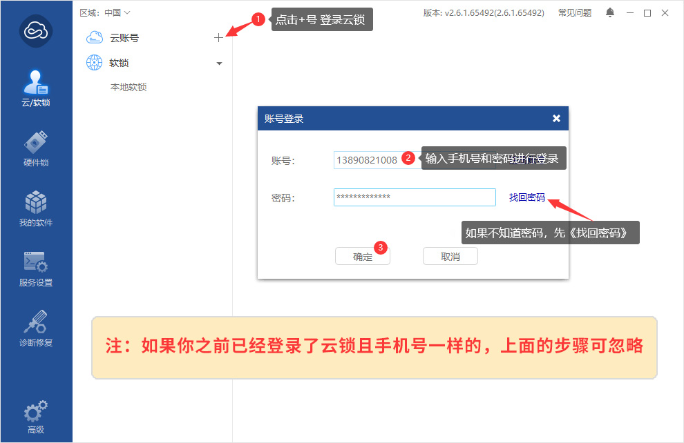 2,下载后使用手机号登录云锁