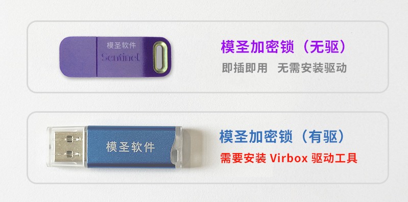 模圣硬件锁(加密狗)有无驱锁和有驱锁两种类型,如下图所示: